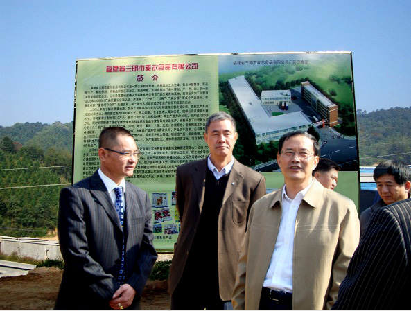 二0一0年十一月十二日上午,市委書記黃琪玉率市委程立雙秘書長、市委農(nóng)辦閻偉強主任、市農(nóng)業(yè)局黃友杰局長、市畜牧水產(chǎn)局丁鈺銘局長,在三元區(qū)委書記王慶、區(qū)長楊稚平和副區(qū)長王小堅的陪同下,視察福建省三明市麥爾食品有限公司育生農(nóng)牧養(yǎng)豬基地,并聽取了公司董事長陳瑞躍的匯報,市委書記詳細的了解了該養(yǎng)殖基地循環(huán)經(jīng)濟、養(yǎng)殖廢棄物變廢為寶綜合利用以及帶動農(nóng)戶,促進農(nóng)民增收具體情況。